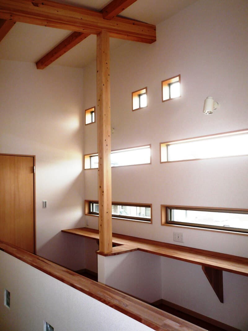 2階は広さを感じる勾配天井に。男の子と女の子のお子様の成長に応じて、部屋を壁で仕切る工事ができる造りにしました。