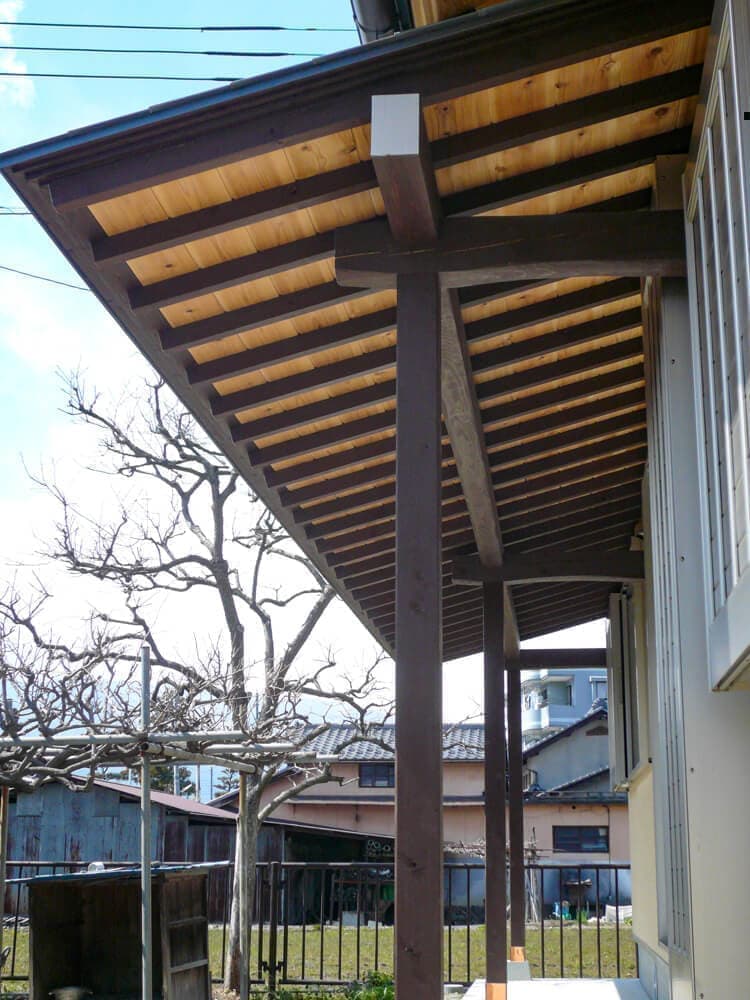 屋根は丸みを帯びたむくり屋根にしました。軒の出は深くして、夏の日差しをカット。雨の日に窓を開けていても問題ありません。